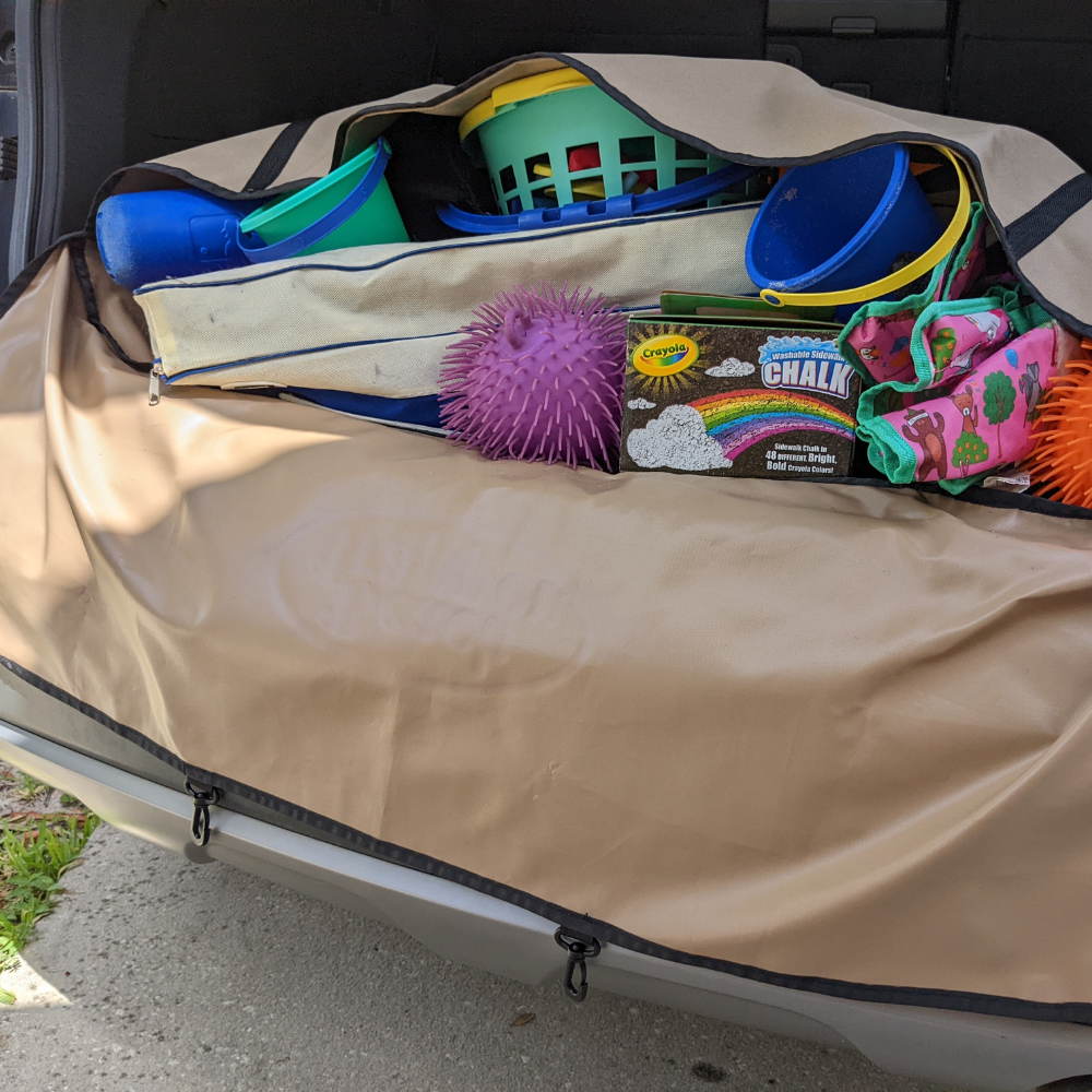 Being on the go requires a surprising amount of stuff. It's not easy to keep your items organized and accessible, and your car or truck clean. Consider the Trunk Trapper®, a car and SUV trunk organizer. Whether you have a car full of kids with sports gear, camping equipment from a weekend trip, or chairs and sand toys from a day at the beach, choose the Trunk Trapper®. It can hold it all. It will keep your items contained during your ride. But it's more than that. In case of a sudden stop, this trunk storage bag will prevent objects inside from becoming airborne hazards and will help contain a mess. The hooks keep everything secure inside. We solve your car trunk storage problems.